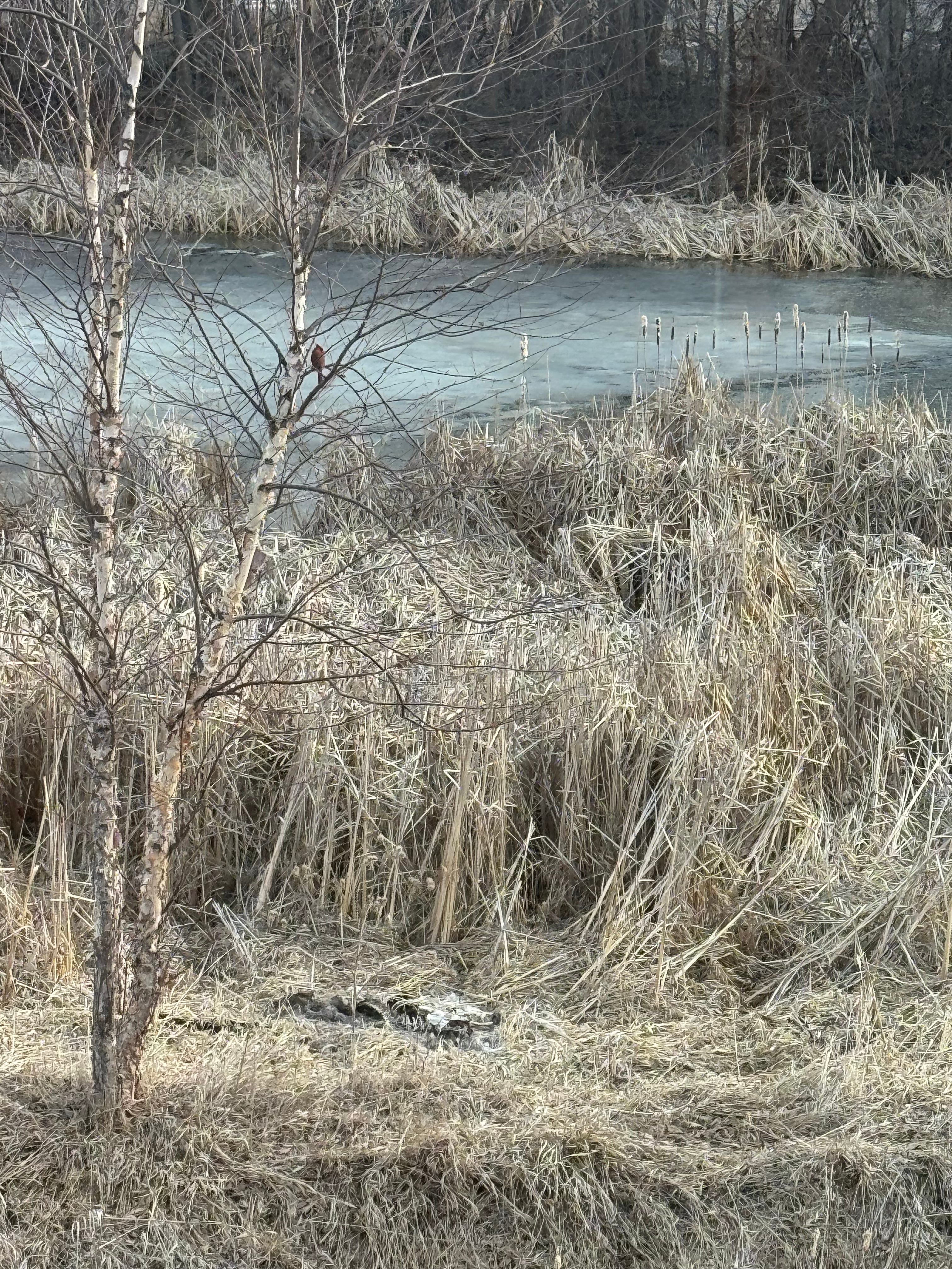 But it has been a gruesome fascination, allowing nature to “take its course,” piquing my curiosity about the ongoing pageantry the marsh will host as the pond ice continues to recede and the grasses and cattails continue their resurrection with emergent spring. I would be happy for it NOT to include another fallen deer, but this is, after all, nature. I am not in charge of its comings and goings and machinations in-between. I am but one of its population, dependent, nourished, fascinated, and awed.